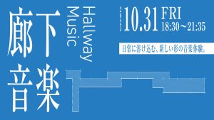 「廊下」は、場所同士をつなぐ結節点として、古くから人々が交錯し、コミュニケーションが生まれる場所でした。そんな「廊下」という流動的な場所に、ふっと現れるのが「廊下音楽」です。本イベントは、アコースティックな音楽に心を揺らし、飲み物や軽食を片手に日々の緊張をほどくような、日常の延長線上で楽しむことのできる新たな「廊下音楽」体験を提供します。